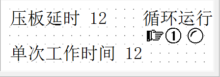 此畫面是設(shè)定電芯壓板下降氣缸延時時間.循環(huán)運行是設(shè)備出貨前調(diào)試使用.單次工作時間是顯示單次工作的時間.
